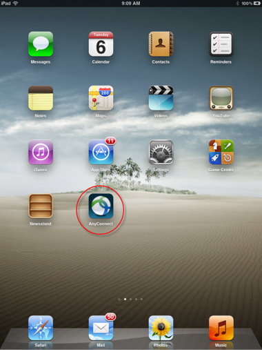 - Find your newly installed AnyConnect application, then tap on the AnyConnect icon to open the app.